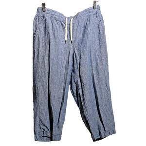 LL Bean Women 12 Blue 100% Linen Straight Leg Pants Coastal Favorite Fit Cropped crop capri ankle casual pockets drawstring neutral beachy beach coast lagenlook quiet luxury casual yacht prep preppy pull on breathable mid rise