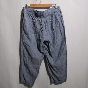 LL Bean Women 12 Blue 100% Linen Straight Leg Pants Coastal Favorite Fit Cropped