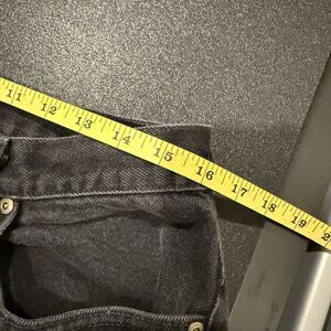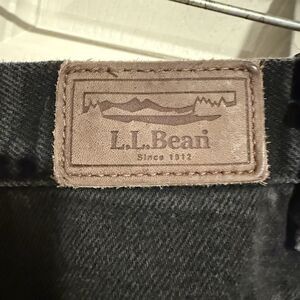 These are L.L. Bean women's black denim jeans in size 16 petite with a relaxed fit. The jeans have a straight style with a distressed, faded look. The fabric type is denim.