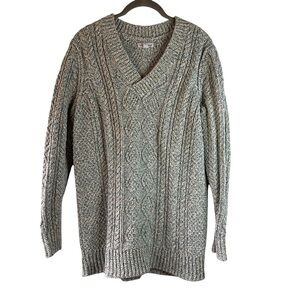 L.L. Bean Women Signature Cotton Fisherman’s Cable Knit Aran VNeck Sweater SZ M