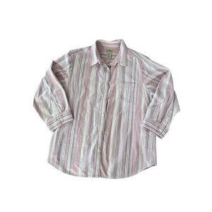 LL Bean Women XL Stripe 3/4 Cotton Retro Utility Pink Outdoor Blouse Preppy