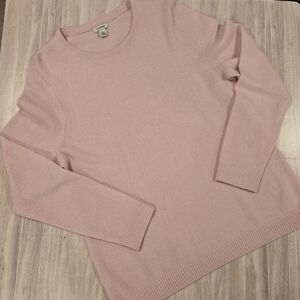LL Bean Women's 100% Cashmere Crewneck Sweater Shell Pink Size Large Pull Over.