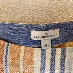 This L.L. Bean Signature women's top in striped 100% linen combines breezy comfort with effortless style. The tie-hem design adds a unique touch, making it a standout choice for casual outings or relaxed gatherings. The lightweight fabric ensures breathability and ease of movement, while the vibrant stripes evoke a classic yet playful aesthetic.