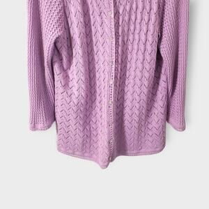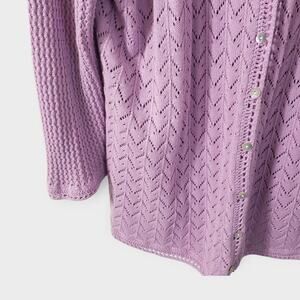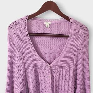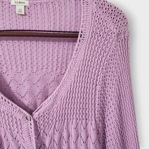 L.L. Bean Womens 2X Linen Blend Pointelle Knit Cardigan Lilac Purple Buttons
