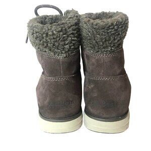 These L.L. Bean ankle boots, crafted with suede and lined with Primaloft, offer excellent warmth and comfort. The side zip and lace-up closure ensure a secure fit, making them ideal for winter outings. Their stylish brown shade complements various outfits, providing functionality without compromising style.