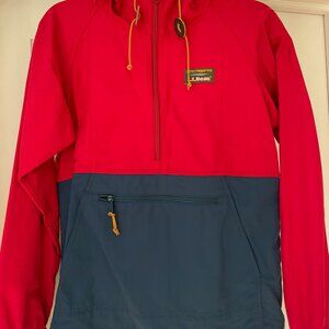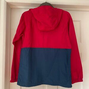 Women's L.L. Bean anorak windbreaker jacket in red and navy blue.