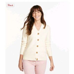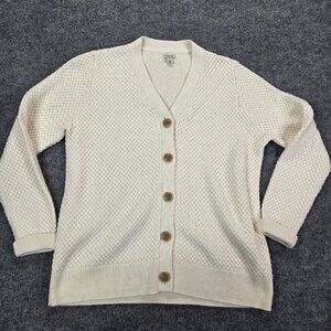LL Bean Women's Basketweave Sweater, Button-Front Cardigan Large 100% Cotton
