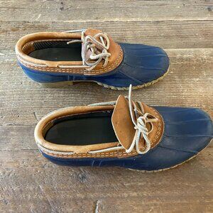 L.L. Bean Women's Bean Duck Boots, Rubber Mocs Tan/Bright Navy/Gum Size 9 Medium