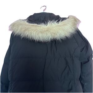 The LL Bean Womens Black Down Insulated Parka Puffer Ultrawarm Jacket in size M is a stylish and practical outerwear option for women. This long-sleeve jacket features a zip closure, faux fur accents, and is lined with nylon for added warmth. With a solid black color. this parka is suitable for various occasions such as travel, casual outings, formal events, and business meetings. Perfect for the winter, fall, and spring seasons, this jacket is perfect for staying cozy and fashionable in cold weather.