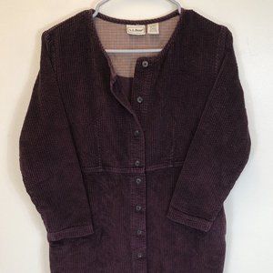 L.L. Bean Womens Brown Corduroy Button Front Collarless Dress