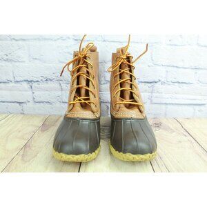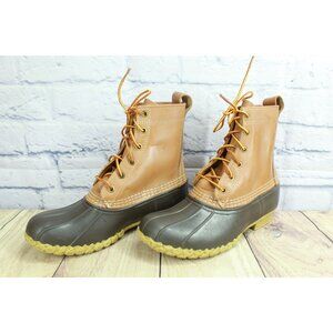 LL Bean Women's Brown Leather 8" Lace Up Unlined Ankle Duck Boots Size 8 M