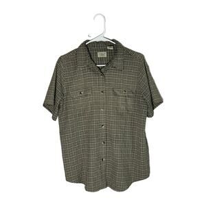 LL Bean Women’s Brown Plaid Button Down Shirt, Large, Pre-owned