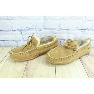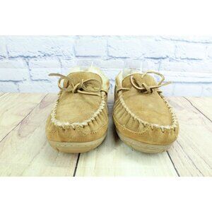 LL Bean Women's Brown Suede Wicked Good Shearling Lined Moccasin Slippers Sz 9 M