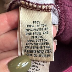 Cozy burgundy zip-up sweater. Features quilted front panel. Ideal for layering.