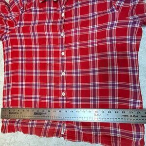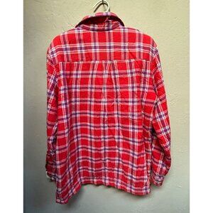 L.L. Bean Womens Button Fleece-Lined Flannel Shirt Jacket Large Red Plaid Casual