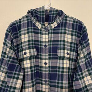 L.L. Bean Women's Button-Front Fleece-Lined Flannel Hoodie Shirt Top XL Plaid