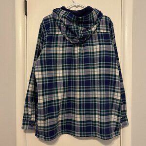 A classic cozy button-front "Fleece-Lined Flannel Hoodie, Plaid" shirt/top from L.L. Bean that is in EXCELLENT condition - please see photos! Size is a women's XL. Shell is 100% cotton and fleece lining is 100% polyester. Item #296823