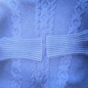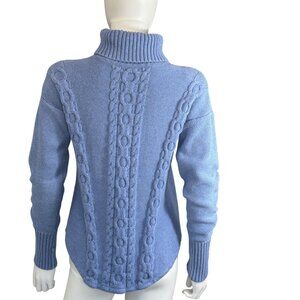 L.L. Bean Womens Cable Knit Turtleneck Sweater Small Blue 100% Cotton Comfort