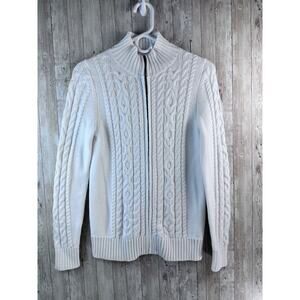 LL Bean Womens CableKnit Coastal Fishermens zip close Cardigan sz XS ID 298836