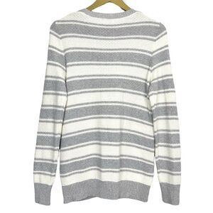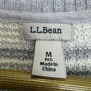 LL Bean Womens Cardigan Size M Cashmere Blend Striped Gray White Preppy Academia