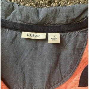 The LL Bean Women's Plus Size 1X Coral Striped Pullover Top is a stylish and comfortable option for casual wear. With its long sleeves and button neck closure, this top is perfect for everyday wear. The vibrant coral stripes add a pop of color to your wardrobe, while the pullover style makes it easy to throw on for any occasion. Made by the trusted brand LL Bean, you can expect quality and durability in this wardrobe essential. Very minor mark on the front of the shirt. See pictures.