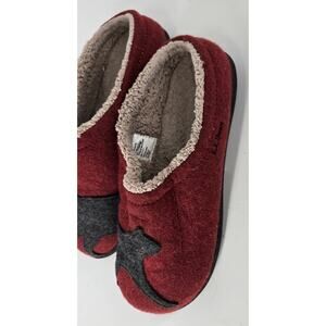LL Bean Womens Daybreak Scuffs Kitty Cat Wool Comfort Slippers Rubber Sole Red
