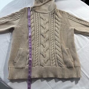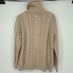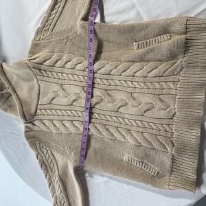 L.L. Bean Women’s Double L Mixed Cable Knit Sweater Funnel neck Size XL Tan. ID 513958 Excellent used condition, no damage no snags or pulls. 100% cotton, soft. Please see photos with measurements to ensure fit. Beautiful sweater!