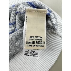 Stay cozy and stylish all winter with this beautiful L.L. Bean women’s turtleneck sweater. Crafted from a soft and warm cotton-cashmere blend (95% cotton, 5% cashmere), this high-quality knit features a classic Fair Isle / Nordic snowflake pattern in shades of gray, white, and blue — perfect for cold-weather layering or après-ski style.