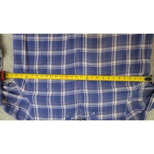 Pre-owned, good condition, no notable flaws, except that the fleece lining has gathered slightly at the bottom seam, as shown in the photos. This isn't visible from the outside of the shirt and doesn't detract from its coziness.