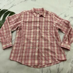 LL Bean Womens Flannel Shirt Size M Pink Cream Plaid Long Sleeve Button Up