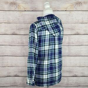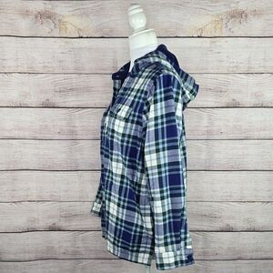 L.L. Bean Women's Fleece Lined Flannel Button Front Plaid Hoodie Small Petite
