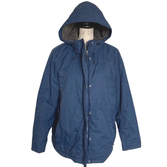 Women's Fleece Lined Dark Blue Parka hooded warm winter Coat Jacket by LL Bean, size XL, in excellent pre-owned condition