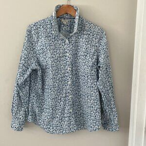 Keywords: LL Bean, women’s XL, floral blouse, long sleeve shirt, cotton top, collared button down, blue white print, cottagecore, garden party, classic fit, preppy style, workwear, casual top, spring summer wardrobe.