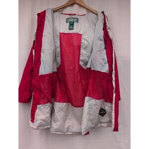 LL Bean Womens Hooded Rain Coat Sz PM Red Gore Tex Full Zip Long Lightweight