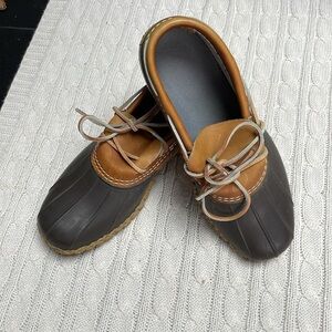 L.L. Bean Women’s Hunting Shoe Duck Bean Boots brown w/leather detailing Size 9 W ankle high unlined Run a little large. Room for thicker socks. Very good condition