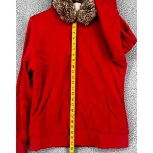 LL Bean Women’s Ivory Zip Hooded Faux Fur Lined Sweatshirt Medium Fur Ruff Hood