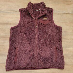 LL Bean Women’s L Mountain Pile High Fleece Vest Maroon Full Zip Outdoor Warm