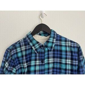 L.L. Bean Women's L Sherpa-Lined Flannel Jacket Shacket Blue Plaid Button-Up