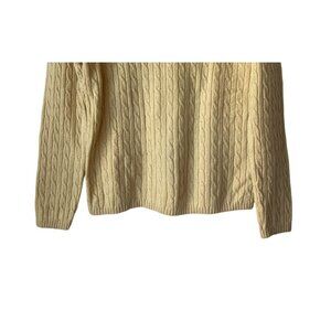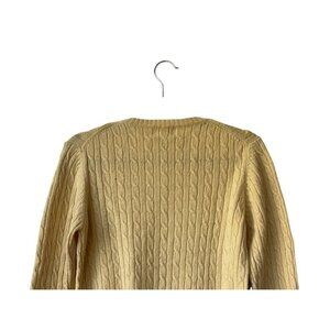 • Wool cableknit lambs wool blend crewneck pullover yellow classy classic