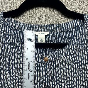 L.L. Bean Womens Large Blouse Top Black White Print Organic Cotton Button Front