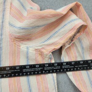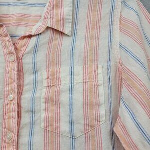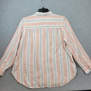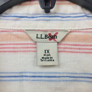 LL Bean Womens Linen Button Down Striped ShirtSize 1X Neutral Pastel Beachy