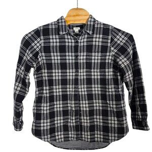 L.L .Bean Women's Long Sleeve Flannel Shirt Large Button Up Black/Gray/White
