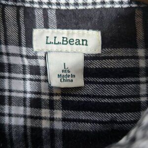 This L.L. Bean flannel shirt offers classic style and comfort. With a button-up design and timeless black, gray, and white plaid pattern, it's perfect for casual outings or layering in cooler weather.