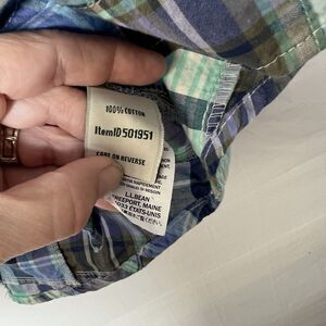 LL Bean Women’s M Petite Blue Plaid Country Patchwork Button Front Top Casual