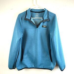 L.L. Bean Womens Medium Airlight Knit Pullover Sweatshirt Quarter Snap Blue