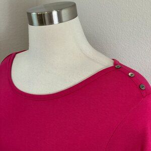 LL Bean Womens Medium Pink 100% Supima Cotton Button Shoulder Top 3/4 Sleeve