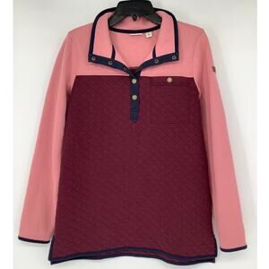 LL Bean Women's Medium Wine Colorblock Quilted Sweatshirt Mockneck Tunic J15-3