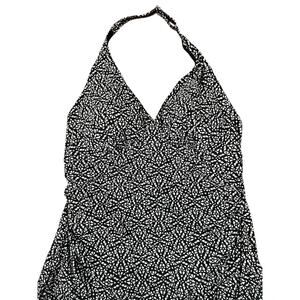 L.L. Bean Women’s Mono Halter Black White Swim Wear Dress SZ 16