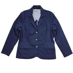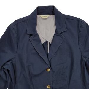 LL Bean Women's Navy Blue Blazer Jacket 3 Button Cotton Sz M Work Preppy Stretch