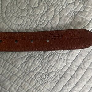 Elegant women's belt with a navy strap and brown buckle. Ideal for versatile styling. Measures 39.5-44” when buckled. 1.5” width.